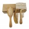 Natural Wood Hair Brush with Wooden Bristles Massage Scalp Comb and Peach Wood Beard Comb for Men and Women 3 pcs